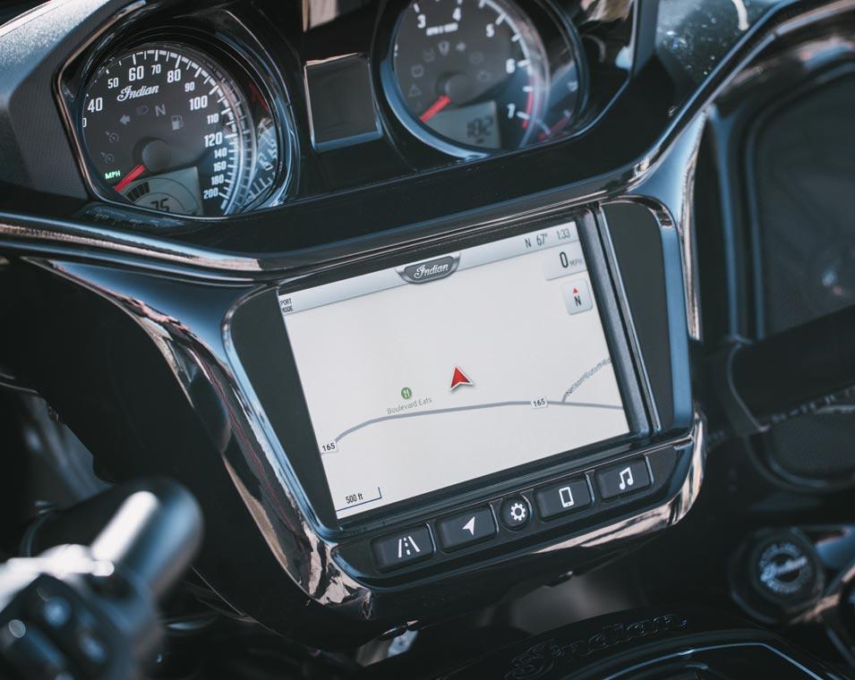 Ride Command® 7" display, af fabriek onder andere uitgerust met GPS-navigatie, Apple CarPlay®, Bluetooth®-connectiviteit, te configureren meters en ritstatistieken